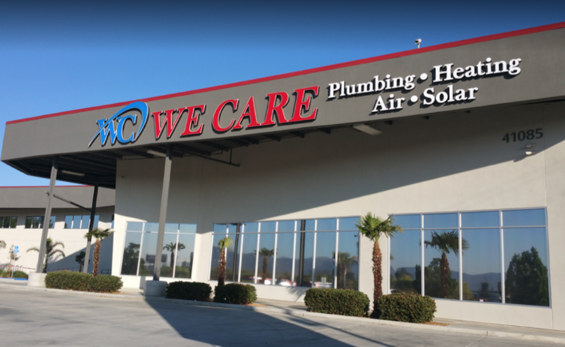 We Care Plumbing, Heating and Air operates from Jefferson Avenue in Uptown Temecula, handling residential plumbing across the valley with a scope that covers the standard emergency and maintenance work — leak repair, water heater replacement, drain cleaning, slab leak detection, and fixture installs. The business combines plumbing with HVAC service, which means a single call can address both water and climate-control problems in homes where those systems interact or fail around the same season. Homeowners in older Temecula neighborhoods know hard water shortens water heater life; those on slab construction know a small leak becomes an expensive dig. Summer heat compounds both issues, and when a pipe fails at night, the difference between a local operator answering directly and a national franchise phone tree matters. We Care covers the full range of urgent and scheduled work that keeps valley homes running year-round, positioning itself as the direct-call option rather than the dispatch-center one.